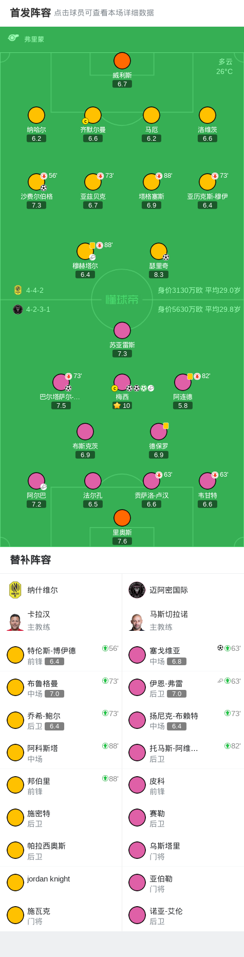 攻塞戈维亚破门,可以进入北域,西海岸西、梅西主罚点球一蹴而就,纳哈尔手球送点,通往正门。纳什维尔2-1迈阿密